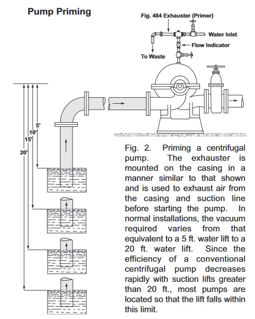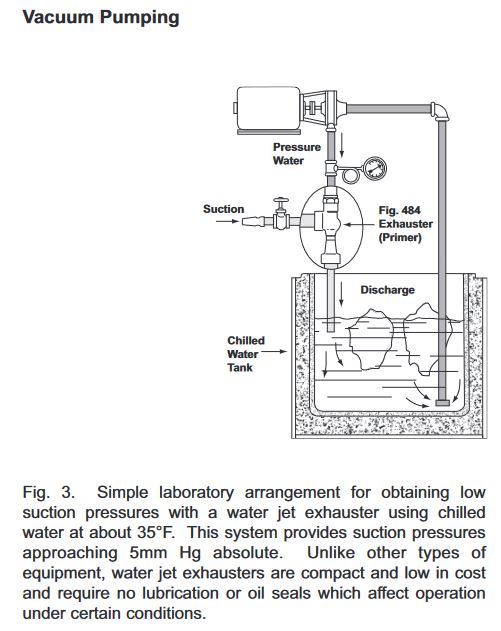 Water Jet Exhausters have been employed in many different industries for different purposes. Generally, their application can be divided into three main categories: (1) priming pumps, (2) evacuating closed vessels, and (3) vacuum pumping or mixing operations. Each of these basic applications is illustrated below.