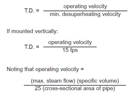 To calculate desuperheater turndown of the Type 6970 unit, it must be noted that turndown is not a function of velocity when using the recycle feature.