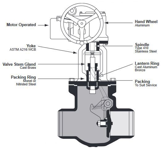 Rockshafts are made of stainless steel with bushings of Monel. Freezing or binding is far less likely to occur than in valves using less corrosion-resistant materials. When intended for service in vacuum lines, rockshafts are provided with water seal lanterns.